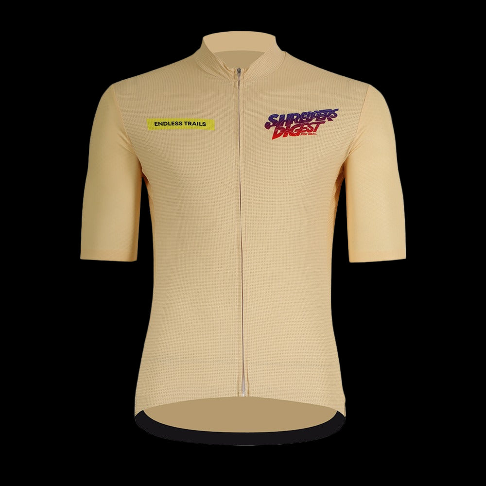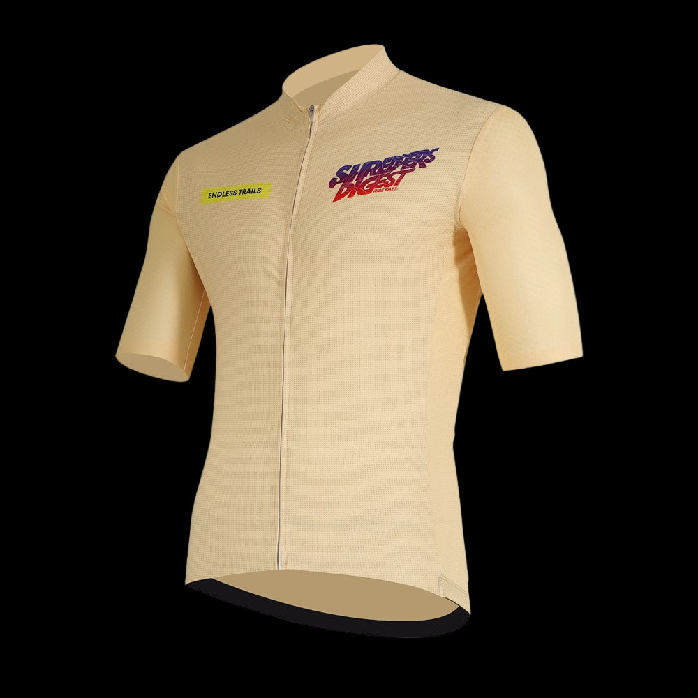 This is a cycling jersey made for cycling. It has a lot of tech features, such as high tech fabrics, breathable sleeves, and vented areas under the armpits.