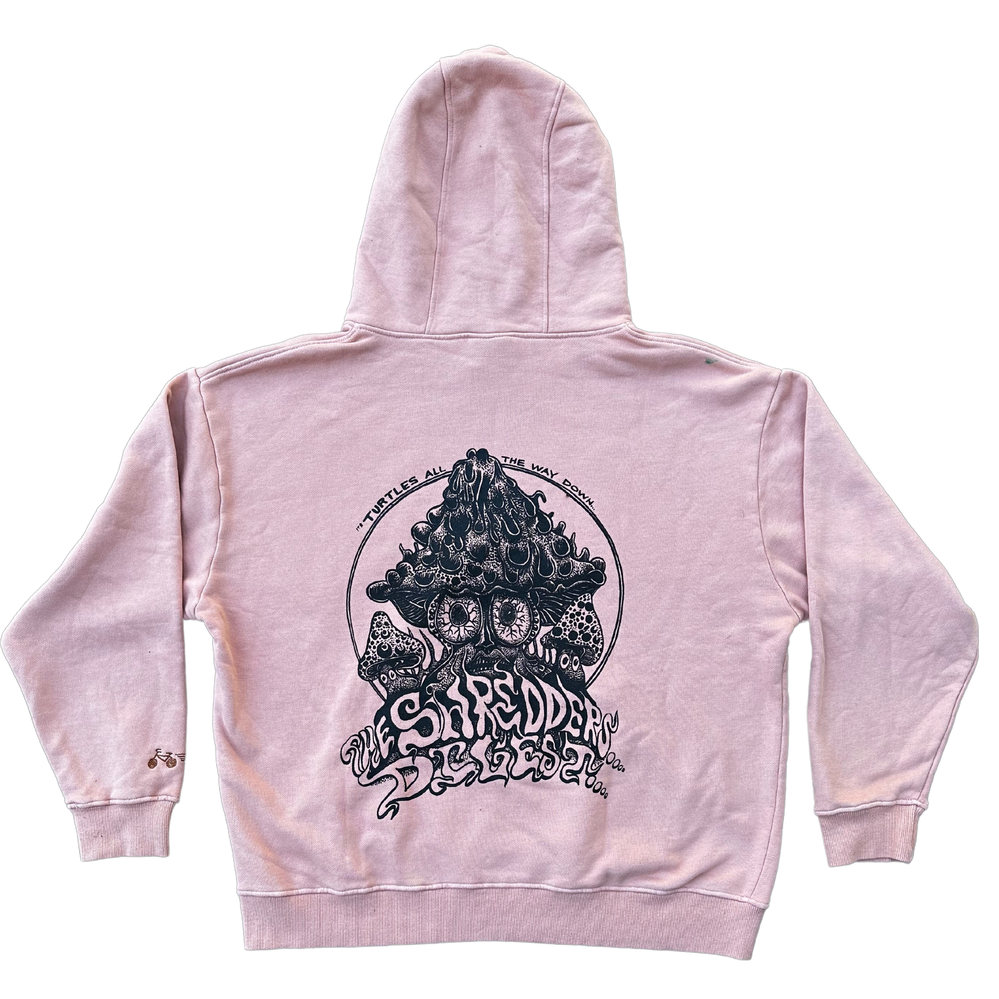 Hand-printed on our heavyweight peach hoodie.